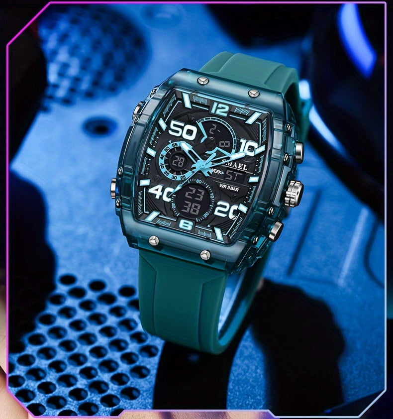 Don't let the style fool you—this watch is built to perform. With a 5ATM water resistance rating, it's ready for swimming, showering, and any adventure you throw at it. The luminous (glow) dual display ensures you can read the time, day or night.